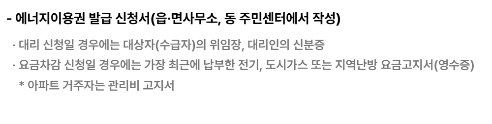 - 일부 지역은 전화나 온라인 신청으로도 가능하며, 이미 에너지복지 대상자인 경우 자동 감면 처리되는 경우도 있습니다.