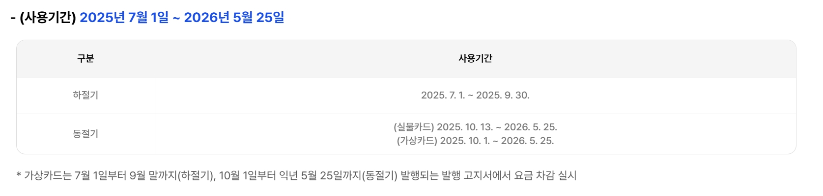 사용기간: 2025년 7월 1일 ~ 2026년 5월 25일