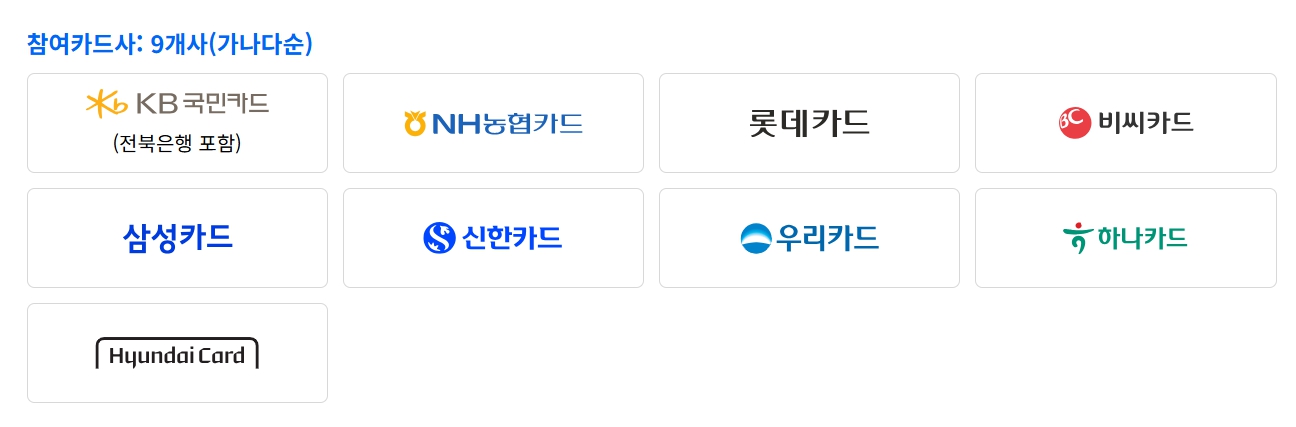 신청 전 반드시 사용할 카드사를 신중히 선택해야 합니다.