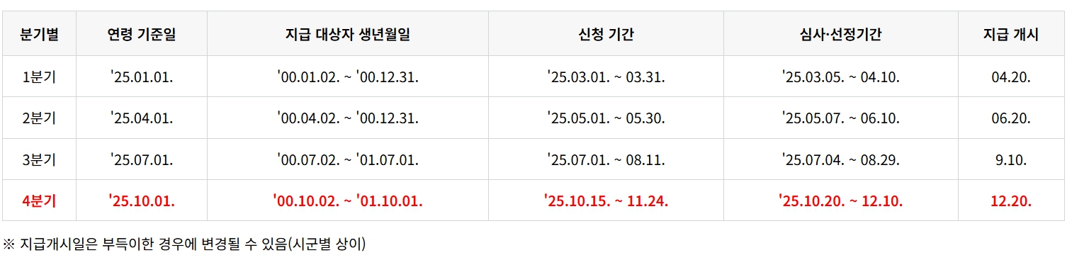 ※ 분기별 신청을 놓치면 해당 분기 지급은 불가하며, 소급 지급되지 않습니다.