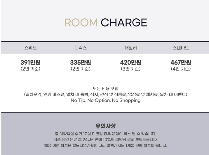 - 열차 내 객실 숙박이 포함되어 있어 이동 중에도 숙박시설처럼 편안한 휴식 가능