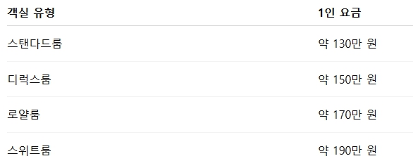 ▣ 2박 3일 코스 요금 (평균가 기준)