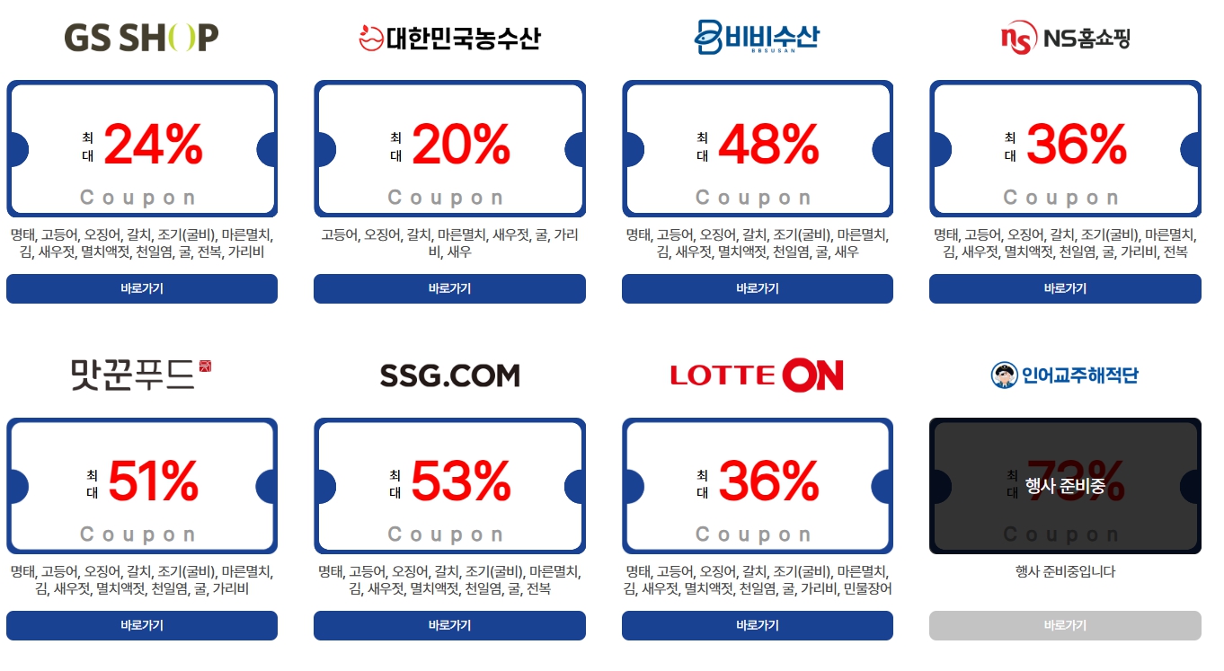- 온라인 쇼핑몰에서는 행사 페이지나 ‘국산 수산물 할인’ 카테고리를 주의 깊게 확인하세요. 참여 업체별 행사 기간이나 품목이 다를 수 있습니다.