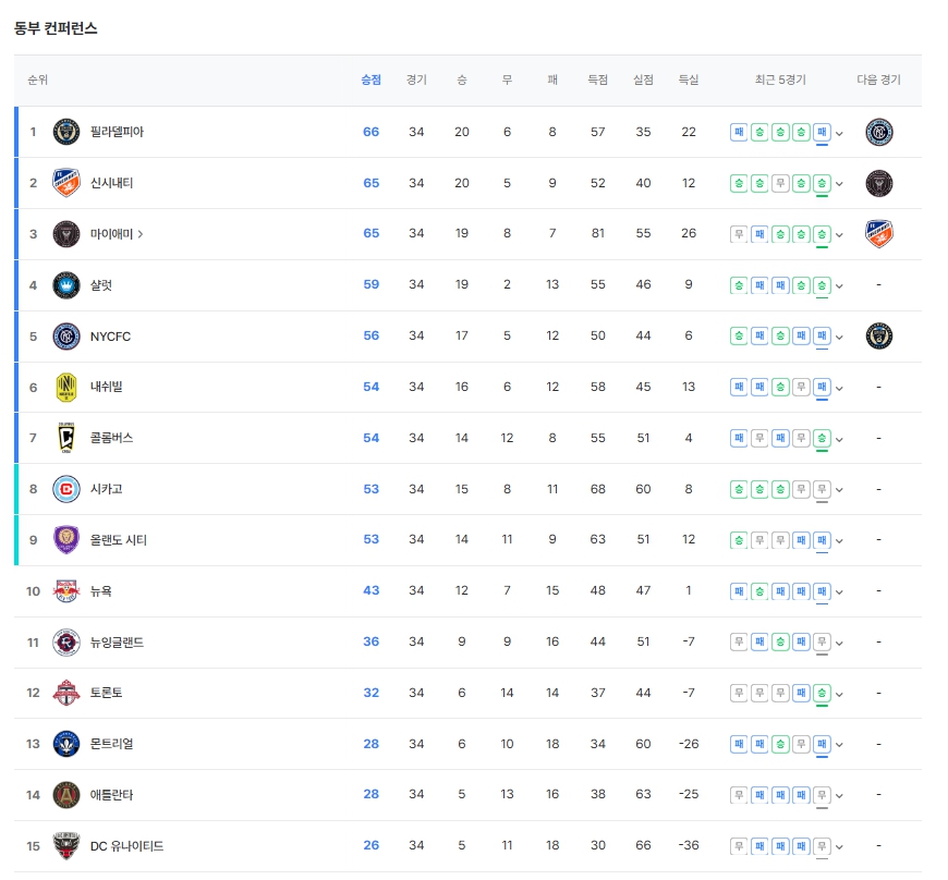 MLS 동부 컨퍼런스 플레이오프 대진표 및 일정