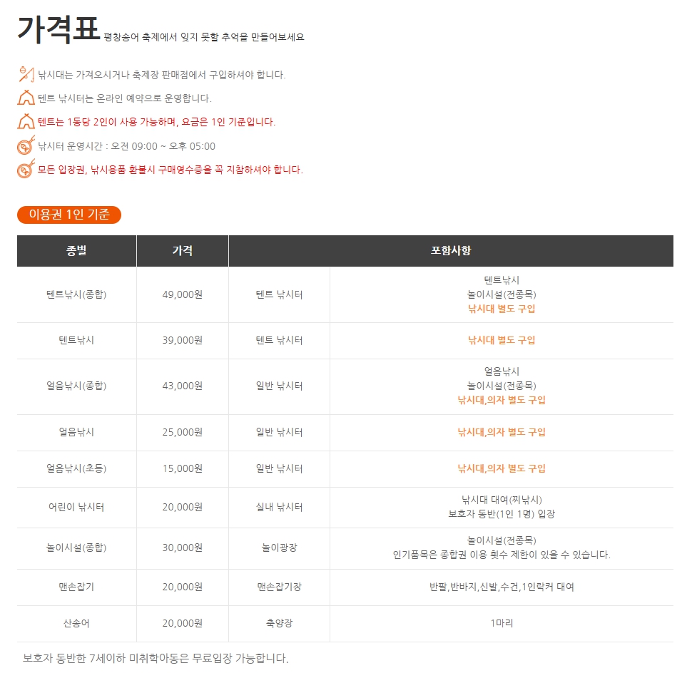 온라인 예약은 텐트낚시만 가능합니다. 그 외는 현장발권만 가능합니다. 참가 일주일 전에는 미리 예약하시길 추천드립니다.