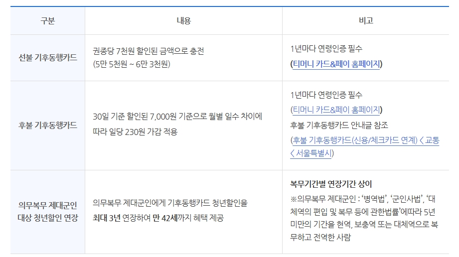 의무복무 제대군인에게 기후동행카드 청년할인을 최대 3년 연장하여 만 42세까지 혜택 제공