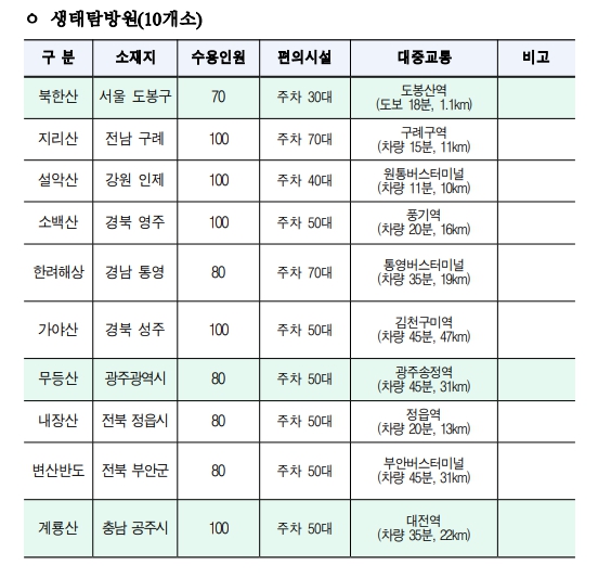 - 예식장소 : 생태탐방원 10개소 및 팔공산 국립공원