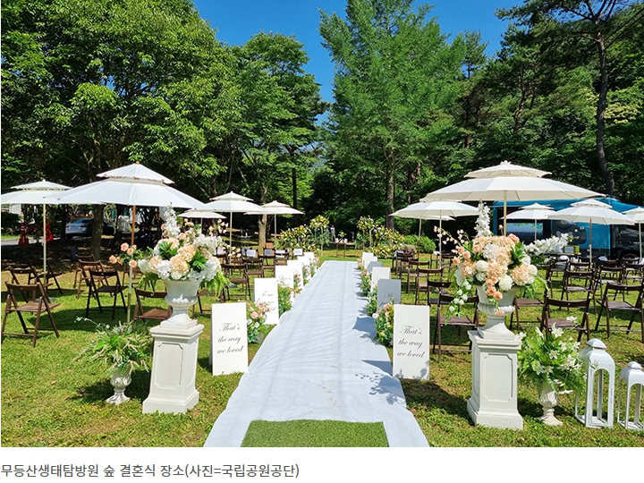 숲 결혼식은 국립공원 내 자연환경이 우수한 장소에서 진행됩니다.
