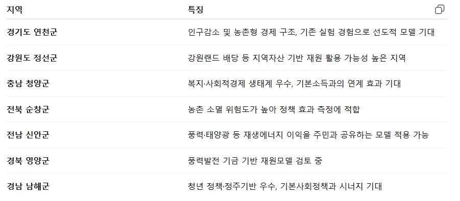 📌 농어촌 기본소득 시범지역 7곳 정리
